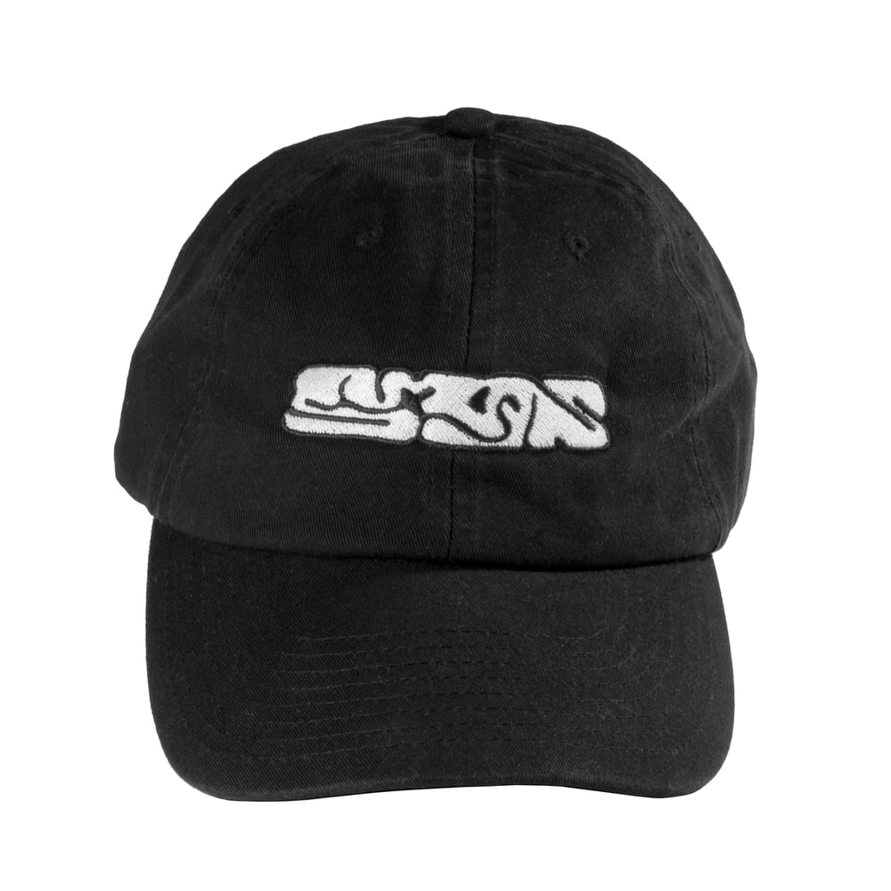 Unstructured cotton hat with a curved visor and adjustable strap.